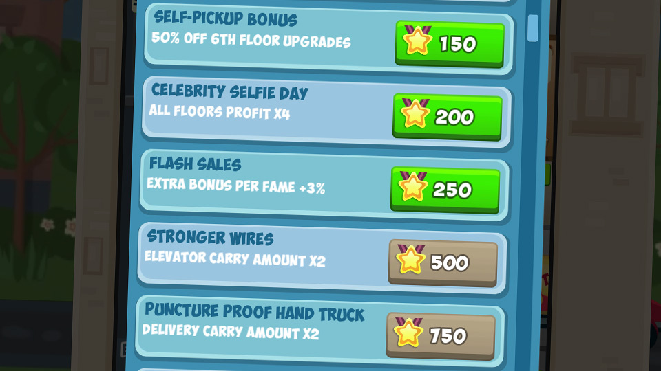 Managers do the trivial work for you, so you just have to concentrate on upgrading the right floors. In addition, managers allow you to activate a boost that will improve a floor for a limited time.